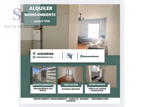 Monoambiente de calidad, con buen diseño y separación de cocina, balcón con deck, con acceso a terraza común con parrillero y solárium.